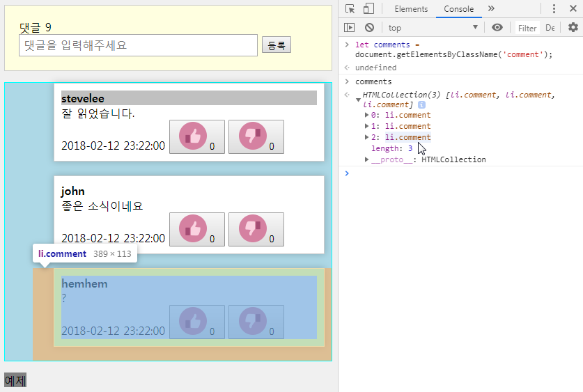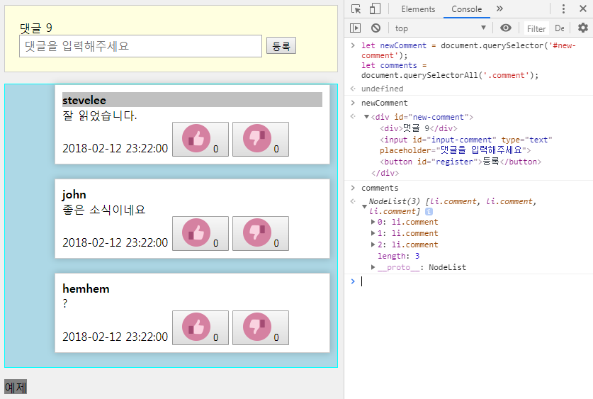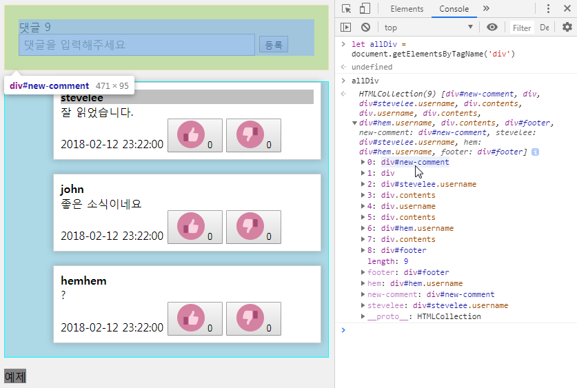 let comments = document.querySelectorAll('.comment'); //comment는 class라서 '.comment'