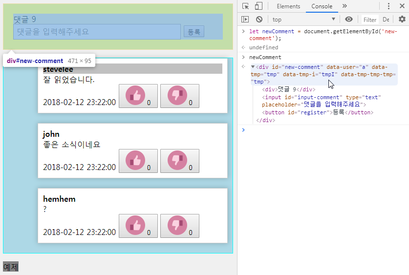 let newComment = document.querySelector('#new-comment'); //new-comment는 id라서 '#new-comment'