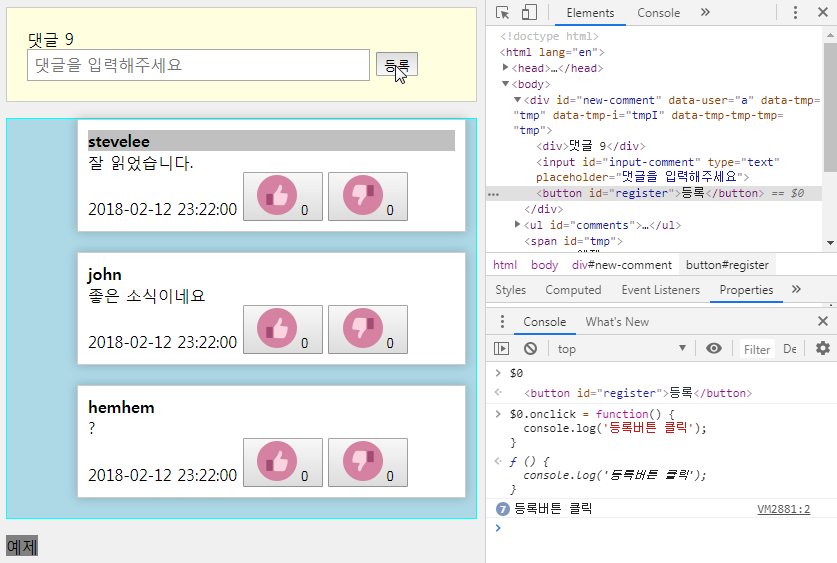 위의 데이터 조작이나 이벤트 핸들러 등도 이것을 응용해서 할 수 있다.