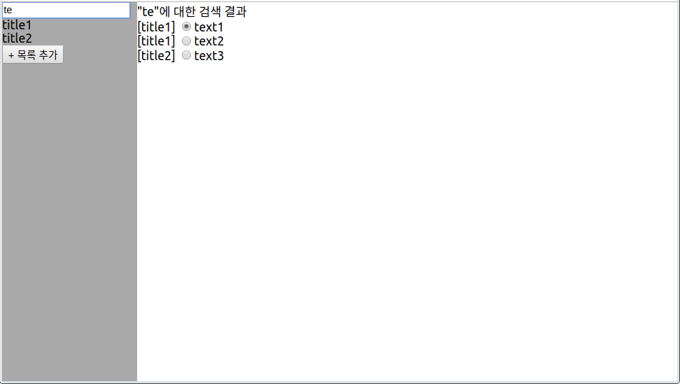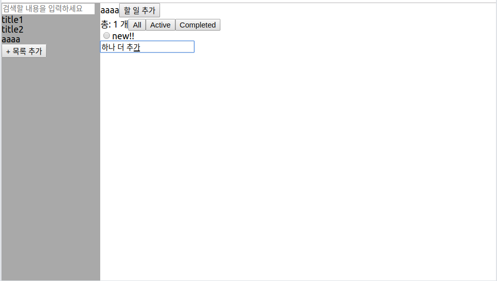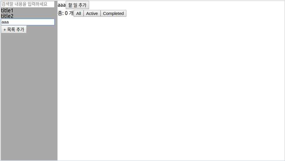 왼쪽의 목록을 클릭하면 오른쪽에 그 목록의 할 일이 표시된다.(아래 이미지는 'title1'을 클릭한 상태)