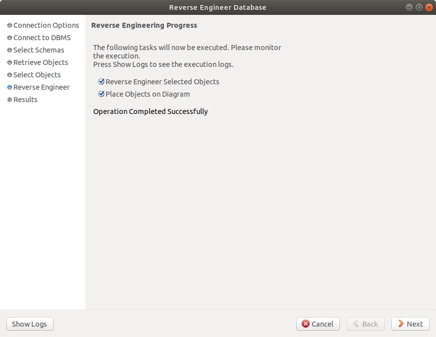 EER diagram을 만들때와 같이 next, next를 눌러주면 된다.