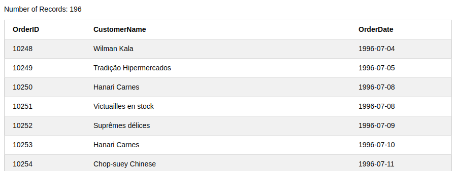 SELECT orders.orderID, customers.customerName, orders.orderDate FROM orders INNER JOIN customers ON orders.customerID=customers.customerID;