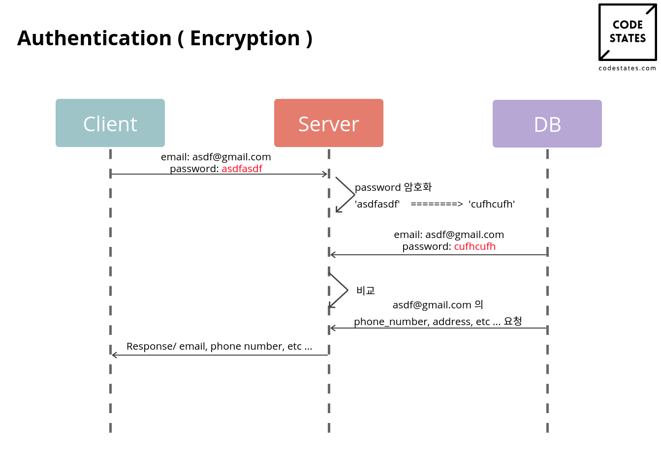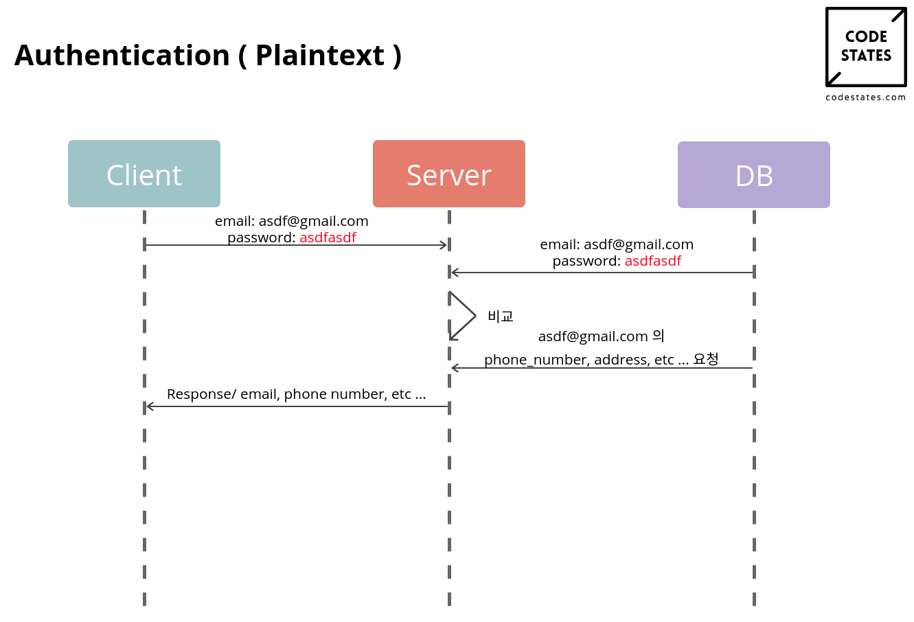 - 처음에 로그인 요청할 때 클라이언트에서 서버로 http request에 email / password가 날 것으로(암호화 없이) 전달 되나요? > yes
