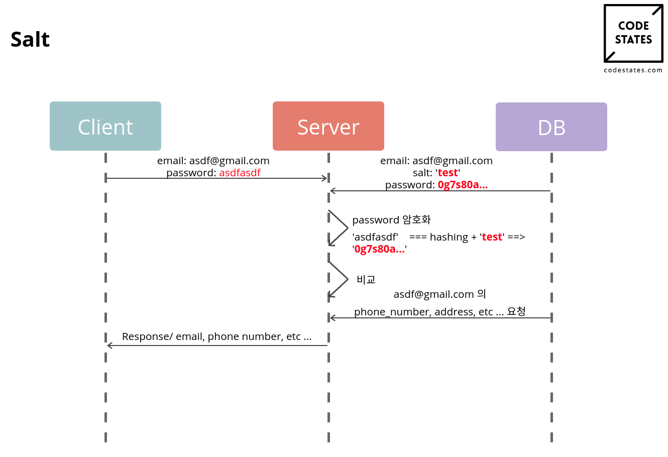 - Hashing과 Salting 사용 이유 알기.
