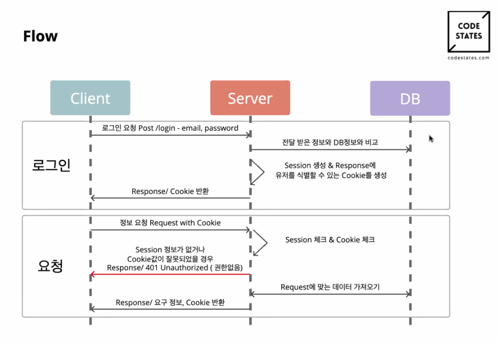 - 사용자가 로그인하면, 서버에서 세션정보를 만들고 그걸 쿠키에 넣어서 클라이언트에 보낸다