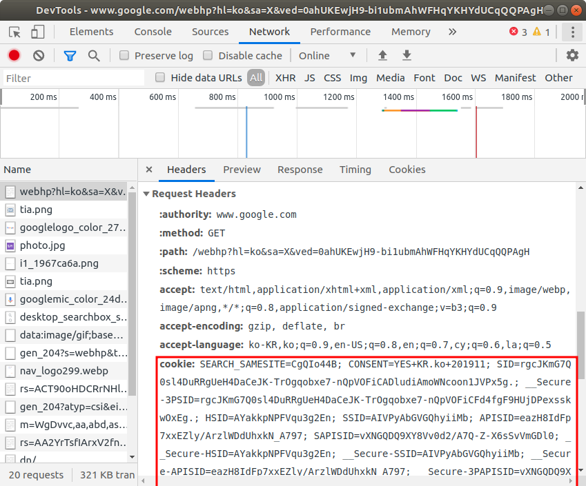 http요청의 헤더에 자동적으로 쿠키가 담김