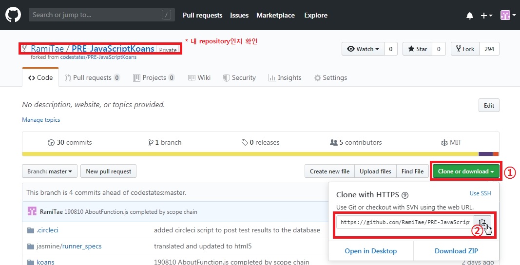 1. 프로젝트를 Fork해서 내 Repository로 복사해오기