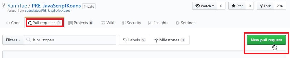 ● 완료: 깃헙에서 New Pull Request 또는 Pull Request 보냄.