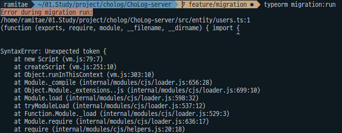 typeORM cli로 마이그레이션을 하려고 했더니 자꾸 위와 같은 에러가 발생해서 골머리를 앓다가 아래 링크를 통해 해결했다.