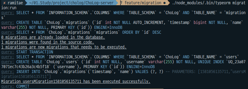 $ ./node_modules/.bin/typeorm migration:run