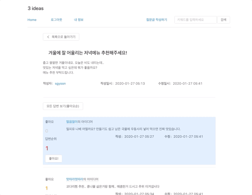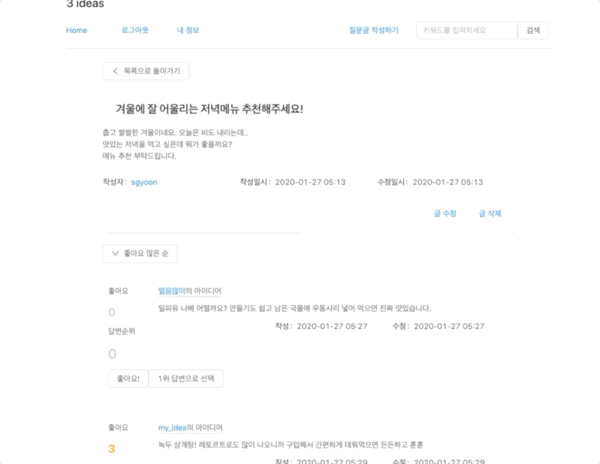 질문에 대한 아이디어를 답글로 작성