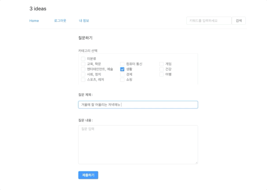 3ideas는 질문을 올리고 답변을 받을 수 있는 간단한 소셜 Q&A 서비스이다.