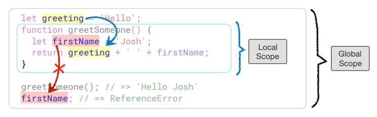 - Global Scope: 최상단 Scope. 여기서 생성한 전역 변수는 어디에서든 접근 가능.
